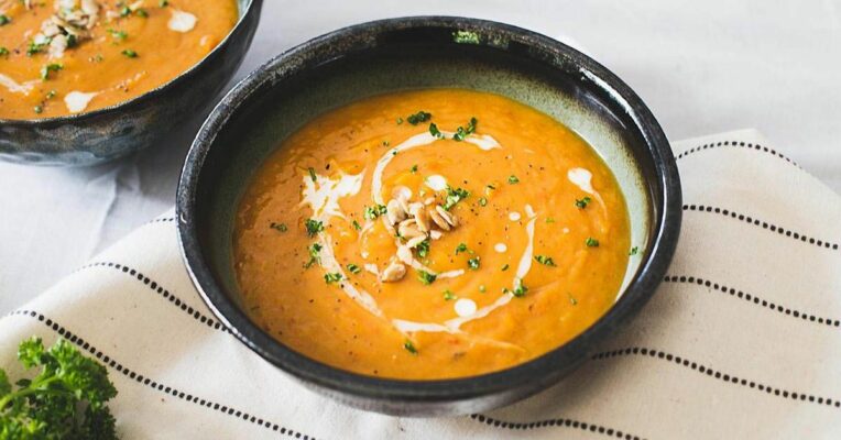 Súp bí đỏ (Kürbissuppe) là món ăn biểu tượng của mùa thu nước Đức. Bí đỏ được nấu cùng hành tây, quế, nhục đậu khấu và chút kem tươi, tạo nên món súp sánh mịn, thơm nức mũi. Hãy tưởng tượng, trong tiết trời se lạnh, còn gì tuyệt vời hơn khi bạn thưởng thức món súp bí đỏ với vài lát bánh mì.